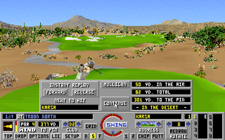 While Links: The Challenge of Golf is showing its age, the Troon North expansion stands out by pushing the original engine to its limits. The desert palette of burnt oranges and dusty browns brings a vivid contrast to the courses’ sculpted granite outcroppings and spiny vegetation. Texture detail on the rock formations and sand bunkers is remarkably sharp, making each hazard feel like a tangible obstacle rather than a flat graphic overlay.
