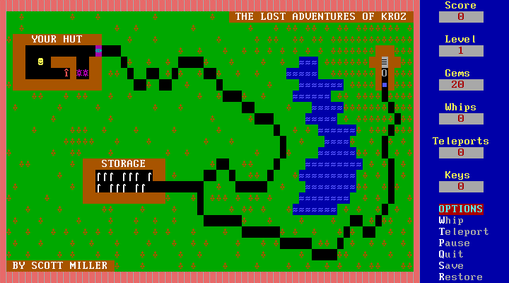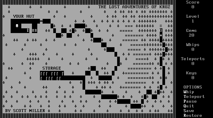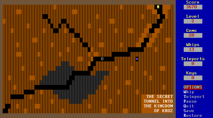 Flavor text appears sparingly between key worlds, offering cryptic hints about the origins of the Kroz dungeons and the enigmatic power source at their core. This light touch allows players to focus on gameplay, while still providing enough intrigue to keep lore enthusiasts satisfied. The game’s manual and website expand on this backstory, inviting curious players to dive deeper into the mythos behind the monsters and traps.