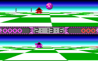 Masterblazer picks up where its predecessor, Ballblazer, left off by retaining the core first-person, split-screen competition centered around high-speed Rotofoils and the ever-elusive Plasmorb. Each match still boils down to “Three minutes, two players, one victor,” but Masterblazer deepens the experience with refined physics and more nuanced controls. The game feels more responsive, making drifts, boosts, and Plasmorb interceptions more satisfying, whether you’re lining up a long-range shot or executing a tight corner maneuver.