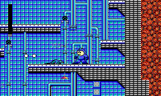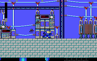 Mega Man’s visuals showcase the charm of 8-bit artistry at its peak. Bright, well-defined sprites pop against solid, easily readable backgrounds, giving each level a distinctive look. The color palette may be limited by modern standards, but each stage feels unique, from the metallic sheen of Volt Man’s factory to the mechanical spikes of Dyna Man’s domain.