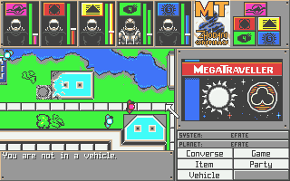 Given its 1990 release, MegaTraveller’s graphics are a snapshot of early sci-fi RPG aesthetics. The engine uses a top-down perspective for planetary exploration, with modestly detailed sprites representing your team and NPCs. While pixelated by modern standards, the environments are well differentiated—seedy spaceport cantinas, sleek Zhodani embassies, dusty frontier outposts—all convey a distinct atmosphere through carefully chosen color palettes.