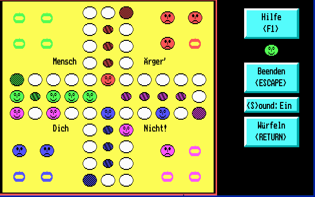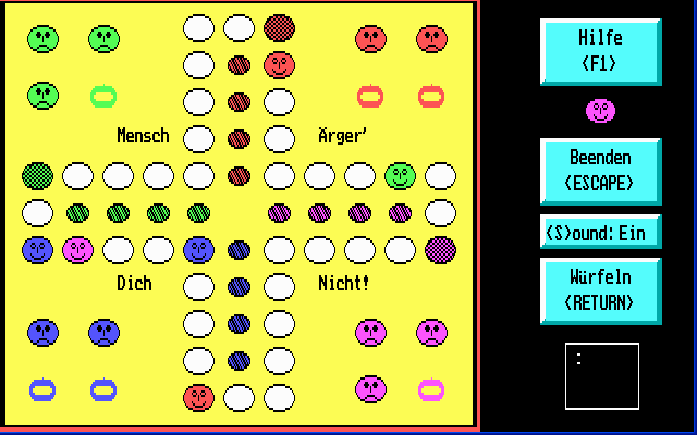 Mensch Ärger’ Dich Nicht! stays faithful to the classic board game experience by faithfully implementing the original rules. You control your four figures using a simple dice mechanism: press Enter to roll and press Enter again to stop. This tactile interaction gives a sense of suspense each time you launch the die, making every roll feel meaningful.