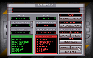 The true innovation of Battledrome lies in its networked play. Long before online multiplayer became commonplace, this title allowed two players to duke it out over modem or LAN. Matches are fluid, with minimal latency on a properly configured connection, and the 486-33–era performance is surprisingly smooth. Whether you’re lining up a long-range shot or closing in for point-blank combat, controls remain responsive, making skirmishes feel both strategic and adrenaline-charged.