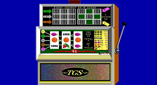 Although the graphics are simple by modern standards, they suit the slot machine theme perfectly. Animations play out cleanly whenever you hit a winning line: flashing lights, pulsing borders, and a brief replay of the winning combination reinforce that satisfying moment of victory. The overall aesthetic remains faithful to the style of The Las Vegas EGA Casino title while feeling refreshed for standalone play.