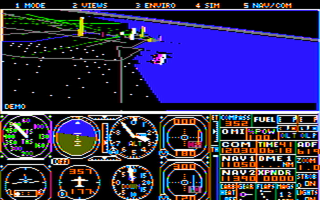 Flight Simulator v4.0 spans the graphic spectrum from CGA through VGA in EGA resolution, ensuring compatibility with a wide range of PCs of the era. While the blocky terrain textures and limited color palette are a far cry from modern standards, there’s a certain nostalgia in watching pixelated cities unfold beneath your wings.