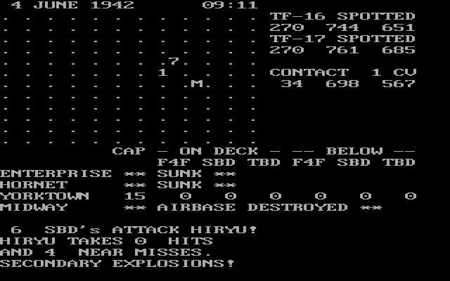 The turn structure strikes a satisfying balance between realism and playability. Each turn represents several hours of battle, during which you assign reconnaissance missions, move task forces, and prepare air groups for attack or defense. The computer-controlled Japanese fleet moves according to preprogrammed objectives, setting up a cat-and-mouse contest of detection versus stealth. As you uncover enemy carriers, the tension ratchets up: should you risk sending your dive bombers deep into hostile waters, or hold them back to protect your own fleet?