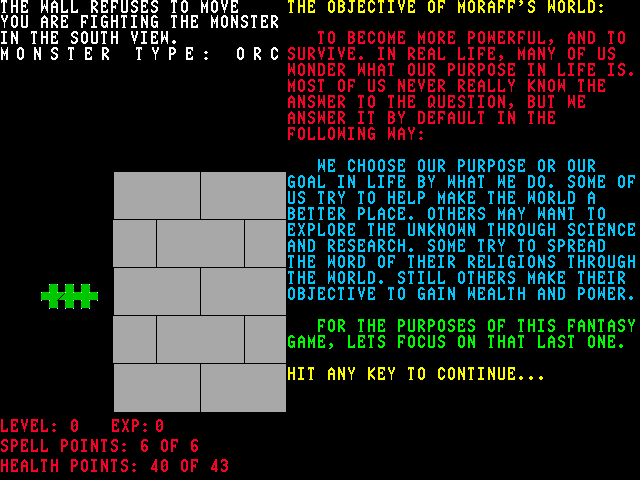 In summary, Moraff’s World is a compelling time capsule of early shareware RPG design. Its straightforward interface, extensive dungeon systems, and hearty dose of nostalgia make it a worthwhile title for adventurers seeking a no-nonsense, exploration-driven quest. While it may not match the polish of modern RPGs, its core gameplay loop remains as addictive as ever.
