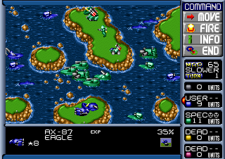 The depth of combat comes from multiple interlocking systems. Terrain types such as mountains, plains, and water affect movement costs and defensive modifiers, while combined arms tactics reward thoughtful coordination between infantry, armor, air, and naval forces. New units like submarines, ship-based aircraft, helicopters, jump-jet infantry, and paratroopers expand strategic possibilities far beyond the original game’s lunar-only roster.