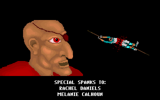 The narrative premise of Nogginknockers 2 picks up the twisted threads left by Bloodlust Software’s first outing, Executioners. You once again find yourself embroiled in the spiteful schemes of Stumpy, the vengeful French midget who leads the Great Midget Rebellion. This time, he’s taken the alter‐egos of developers Lord ][ellbent Deathspew and Smegma hostage, strapping them into electrified chairs and forcing them to referee each match.