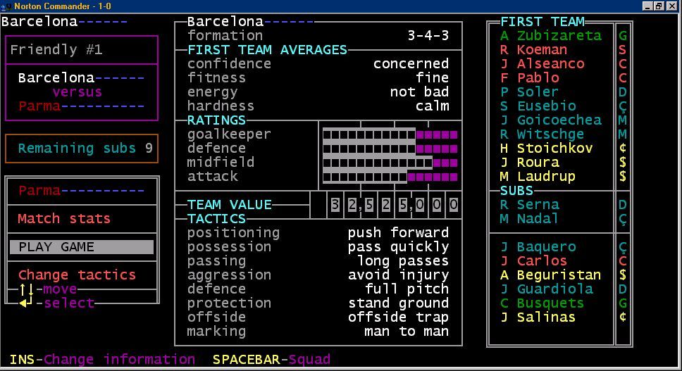 The color palette is limited but functional, using bold hues to distinguish teams, highlight your star performers and flag injuries or suspensions. Menu screens are laid out in a grid pattern, ensuring that every stat is only a few keystrokes away. While it lacks the gonzo graphics of later management sims, it communicates vital information with pleasing simplicity.