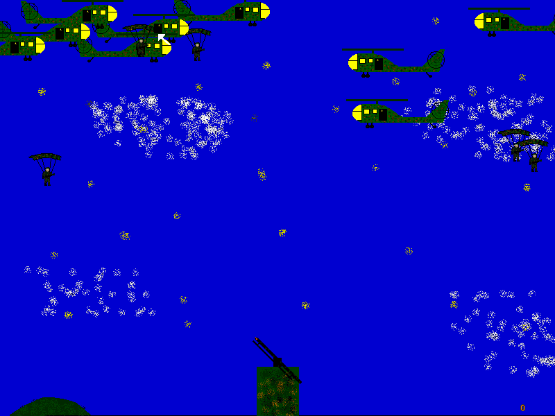 Paratrooper II builds upon the classic arcade-style shooting mechanics of the original Paratrooper game, delivering simple yet addictive gameplay. You pilot a stationary turret at the bottom of the screen, fending off waves of invading helicopters, bombers, and of course the titular parachuting soldiers. The core loop remains satisfying: identify the most immediate threat, aim your crosshair with precision, and manage limited ammunition to prevent enemies from breaching your defenses.