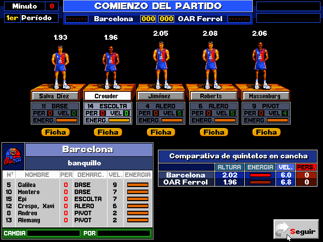 PC Basket 2.0 elevates the managerial formula of its predecessor by giving you hands-on control over both tactics and on-court action. You begin by selecting any of the 16 teams from the 1993/94 Spanish League season, defining your starting quintet and establishing your preferred style of play. Whether you prioritize fast breaks or half-court sets, the two-button control scheme (shoot or pass on offense, steal or block on defense) remains intuitive yet demands thoughtful timing and positioning.