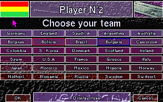 Planet Soccer uses crisp 2D VGA sprites to depict players, referees, and stadiums in vibrant color. Each national team is identifiable by its historic kit design from circa 1994, adding authenticity and nostalgia. The sprites are detailed enough to convey player movement and crowd ambiance without overwhelming the hardware.