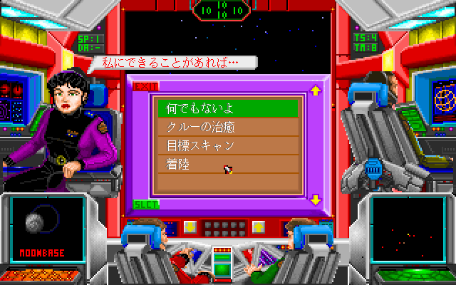 Ship combat sequences switch to a more dynamic viewport where your vessel and enemy craft are rendered with distinctive silhouettes and bright weapon effects. Laser blasts, missile trails, and shield flares are modest by today’s standards, but they convey enough punch to make each dogfight engaging. Background stars and planetary rings scroll gently, adding depth to the vacuum of space without distracting from the action.