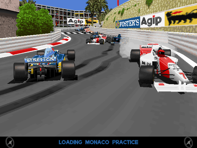 Power F1’s visuals capture the spirit of mid-’90s racing games, featuring polygonal car models and simplified environments that run smoothly even on period hardware. Car liveries are faithfully reproduced, with official sponsor logos and team colors adding a layer of authenticity. Track layouts mirror their real-world counterparts, from the sweeping curves of Silverstone to the iconic hairpin at Monaco.
