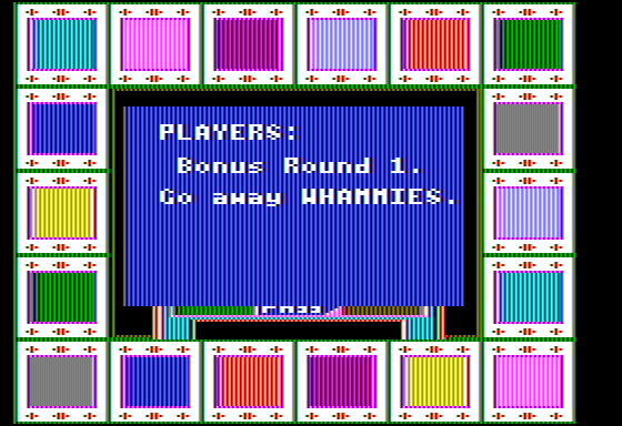Visually, Press Your Luck leans into the limitations of early PC CGA graphics, offering a four-color palette that recalls the retro charm of the original DOS era. The character sprites representing you and your competitors are simple but expressive enough to convey victory dances or Whammy-induced gloom. On the Big Board, flashing boxes and color-coded highlights keep you focused on the numbers and warnings.