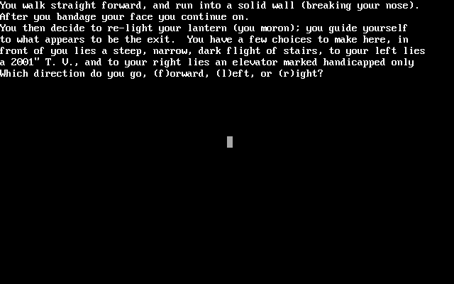 The core interaction blends MS-DOS-era utility software aesthetics with text-adventure logic. You navigate the game world through graphical text-button menus and hotkey-driven choices. Instead of a cursor, you rely on lettered options—[h] to look, [l] to move left, and so on—which hark back to classic interactive fiction. Movement and exploration feel deliberate, even methodical, forcing you to consider each action rather than mindlessly mash a joystick or click endlessly.