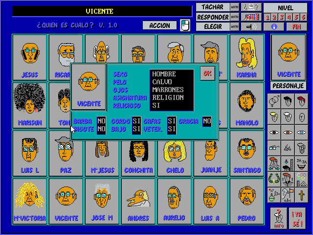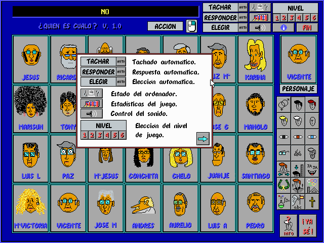 El sistema de pistas es intuitivo y variado. El juego te ofrece atributos como color de pelo, sexo, color de ojos o accesorios distintivos, y cada decisión de pregunta reduce las posibilidades. La mecánica de exclusión es lo suficientemente flexible como para que te sientas siempre en control, pero con un grado de incertidumbre que añade emoción a cada turno. Además, hay un modo en el que intercambias roles y eres tú quien plantea las pistas para que la CPU adivine tu personaje, lo cual abre nuevas dinámicas y desafíos estratégicos.