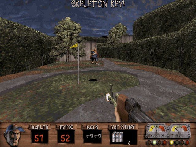 Suckin’ Grits on Route 66 stands as a robust extension of Redneck Rampage’s brawny, backwoods mayhem. Its dozen new levels, each bursting with quirky set pieces and mutant foes, prolong the base game’s addiction to explosive action and dark humor. Whether you’re blasting gators in the swamp or zapping aliens in a museum, the expansion rarely lets the tempo drop.