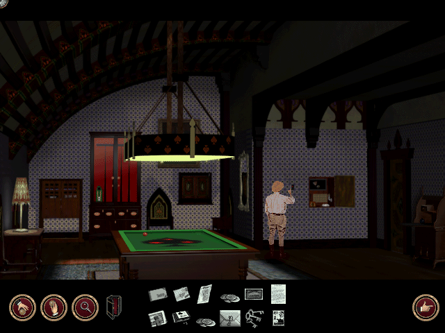 Graphically, The Riddle of Master Lu showcases the mid-’90s advantage of pre-rendered 3D backgrounds paired with live actors. Each location is rendered with painstaking detail: crumbling stonework in Egyptian tombs, lacquered screens in imperial Beijing, and lush jungles hinting at Ripley’s globe-trotting adventures. Despite the technical constraints of the time, the backgrounds retain a striking sense of atmosphere, with well-chosen color palettes and convincing lighting that evoke mystery and antiquity.