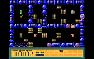 The game gradually introduces new tools and challenges to keep the experience fresh. Early levels focus on mastering chest-pushing and enemy evasion, while later stages require you to locate keys for locked doors, find and use bombs strategically, or hunt down limited ammunition to activate your robot’s gun. With 56 levels on the Atari 8-bit, 60 on DOS, and a whopping 136 on the Atari ST, Robbo offers substantial content that steadily ramps up in difficulty and complexity.