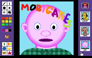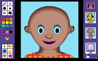 Guess-o-Matic infuses a rudimentary matching challenge: kids reveal cards marked with question marks until they locate the hidden illustration displayed at the bottom. The thrill of uncovering surprises drives engagement, and the simplicity of left-clicking to flip cards helps hone fine motor skills. Barber Joe takes a creative detour, offering three blank head outlines—Joe, Jane, and Woof the dog—and a palette of brushes, colors, and shapes to customize each portrait. Young artists can drag tools across the canvas, learning basic GUI interactions while expressing themselves.