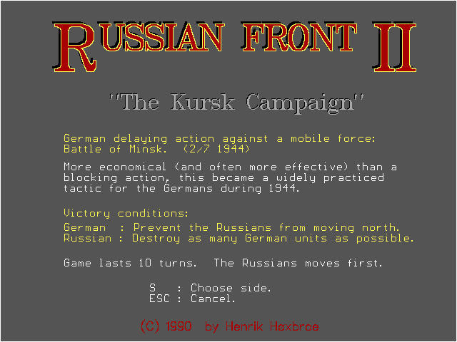 In sum, Russian Front II: The Kursk Campaign is a lean, focused package that faithfully translates classic board-game mechanics into a digital experience. It rewards patience, strategic planning, and a willingness to think several moves ahead. For strategy enthusiasts seeking a no-frills dive into one of World War II’s pivotal battles, this shareware gem is well worth exploring.