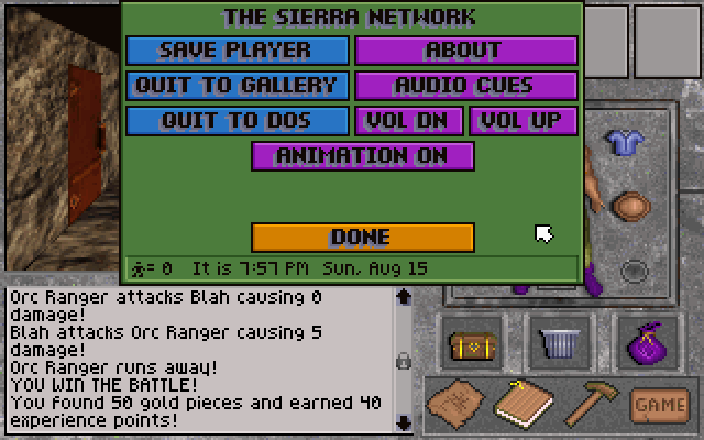 Released in the early ’90s, Shadow of Yserbius uses VGA-style visuals to bring its volcanic dungeons to life. While not polygonal, the hand-drawn textures and attention to color create an immersive atmosphere—you can feel the heat radiating from the lava flows and see the flicker of torchlight along moss-covered walls. Enemy sprites are varied and well-animated, from snarling goblins to hulking trolls, each with a distinct silhouette that makes identifying foes in dimly lit corridors straightforward.