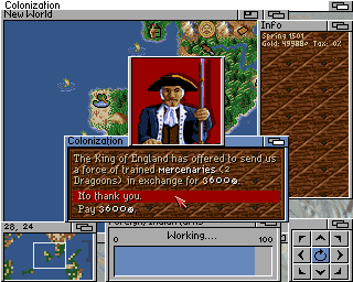 On higher-resolution displays, the game benefits from upscaling and fan patches that sharpen sprites and redraw icons, breathing new life into the visuals. Whether experienced in its original form or with community enhancements, Colonization’s graphics strike a balance between function and historical ambiance, perfectly complementing the gameplay’s depth.