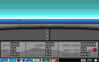 Silent Service II’s graphics were impressive for its time, presenting a clean, functional cockpit layout and crisp 2D sprite-based ships on an expansive 3D ocean plane. You’ll spend much of your time peering through the periscope viewfinder, which simulates optical distortion and limited visibility in fog or night conditions. These effects, though simple by modern standards, heighten immersion and make sightings feel earned.