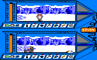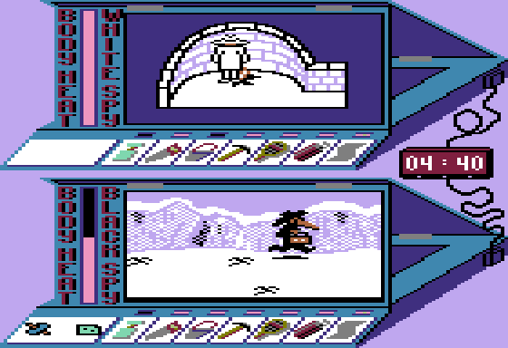 Spy vs. Spy III: Arctic Antics builds on the classic cat-and-mouse formula by marooning both agents on a treacherous iceberg. Players must scour the frozen landscape for three critical items—gyroscope, fuel canister, and key card—before racing to board a rocket-ship. The sense of urgency is constant, as a looming blizzard timer ticks down your survival window.