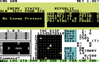 Combat in Star Fleet I is a dynamic tussle between phasers, torpedoes, mines, and shield management. Encountering Krellan fleets triggers Red Alert automatically, forcing you to juggle offensive strikes against multiple ships. Cloaked Zaldron warships introduce surprise hit-and-run tactics, keeping laser-hungry captains on their toes. Once an enemy vessel is disabled, you can deploy space marines to board and capture it, netting extra power reserves and potential promotions—though captured prisoners occasionally attempt sabotage, adding risk to your triumphs.