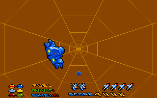 The heads-up display is clean and unobtrusive. Your remaining ammo, shield strength, and fuel reserves sit neatly in the lower corners, freeing up most of the screen for combat. Icons for temporary power-ups animate with brief flourishes whenever you pick them up, providing satisfying feedback. While cutscenes are minimal, the mission-briefing panels feature stylish comic-book art that reinforces the game’s energetic sci-fi vibe.