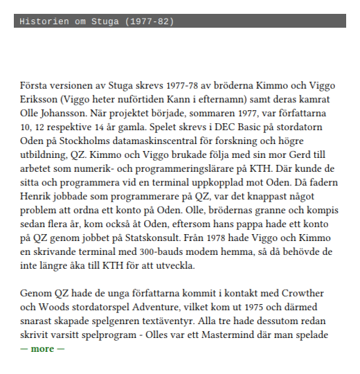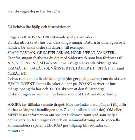 Playing Stugan is an exercise in imagination, patience, and linguistic curiosity. The text-only format fosters a deeper engagement with the game world, inviting you to visualize every creaky stair and hidden passage. Fans of retro gaming and interactive fiction will appreciate this return to fundamentals, where storytelling triumphs over flashy effects.