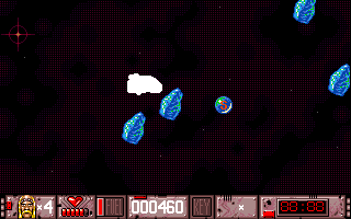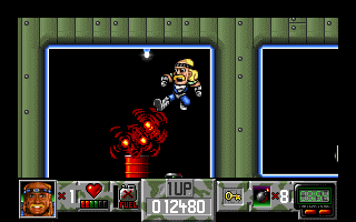 The visual presentation of Suburban Commando is a mixed bag. Sprite work on the ground sections features chunky, cartoon-style characters that evoke comic books more than the live‐action movie. Shep’s exaggerated proportions—huge head, tiny body—lend the game a campy charm, but the animation frames are sparse, making movement appear jerky rather than fluid.