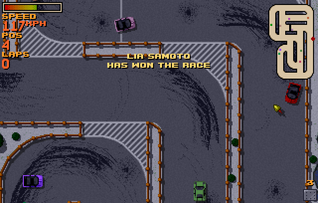 The user interface is clean and functional, with clear speedometers, lap counters, and mini-maps that guide you through complex circuits. Between races, the management screens maintain the retro aesthetic while providing intuitive controls for vehicle purchases, repairs, and special events. Even on modest hardware of the era, the frame rate stays smooth, ensuring you never lose control when the action intensifies.