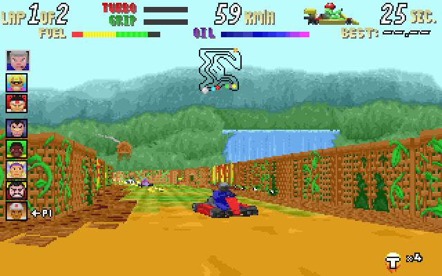 A key element of SuperKarts’ appeal is its power-up and upgrade system. Scattered around each of the 16 tracks are Turbo boosts for sudden bursts of speed, Oil slicks to sabotage rival racers, and specialized Grip enhancements that tighten your cornering. Mastering the timing and tactical use of these items adds a layer of strategic depth, turning each lap into a fast-paced chess match on wheels.