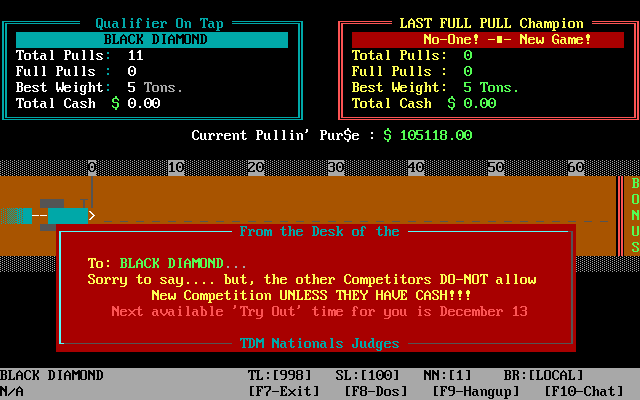 TDM’s Tractor Pull Nationals also introduces a risk-reward dynamic through optional back-room gambling. You can bet on your own performance or hedge your bets on rival competitors. While these side wagers add a thrilling edge, they also compound the challenge of maintaining a healthy kitty. Once your funds hit zero, the day’s competition ends and you’ll need to start a new save or reload to play further.