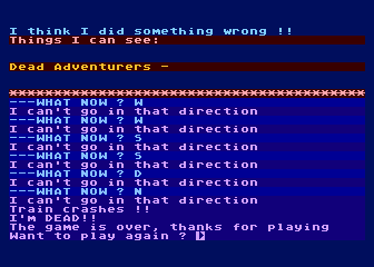Ten Little Indians offers a classic interactive fiction experience where every command matters. From the moment you board the train, you must carefully choose your actions to prevent a deadly crash within a strict move limit. This opening sequence sets the tone for a game that rewards thoughtful exploration and precise planning.