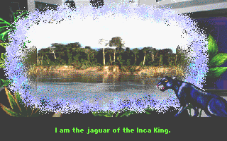 Menus and interfaces use period-appropriate icons and fonts, which may evoke nostalgia for seasoned players. Map screens are richly detailed, showing river forks, tributaries, and potential hazards with clear, color-coded markers. The dream sequence featuring the black jaguar employs more stylized art—shadows, glowing eyes, and swirling mists—creating a memorable, otherworldly introduction to your quest.