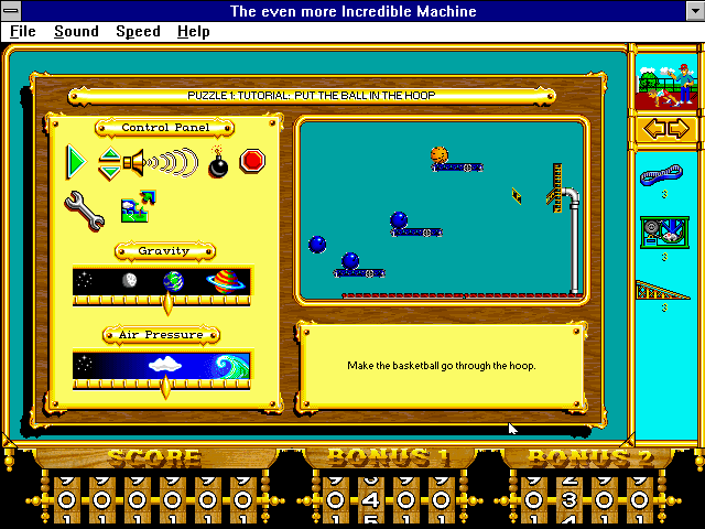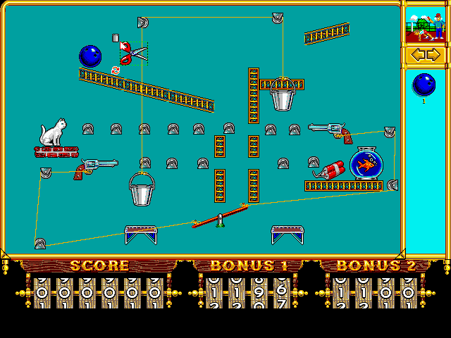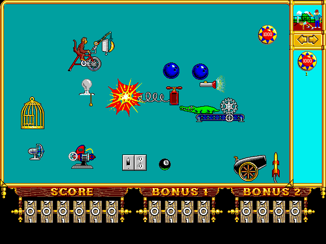 The Even More! Incredible Machine builds directly on the ingenious mechanics of its predecessor, tasking players with constructing complex Rube Goldberg–style contraptions from a fixed set of parts. Each level challenges you to combine gears, pulleys, balloons, and more into a self-contained solution that achieves a simple goal—like popping a balloon or ringing a bell. The delight comes from experimentation: slight adjustments in placement or timing can send your creation from chaos to perfection in an instant.
