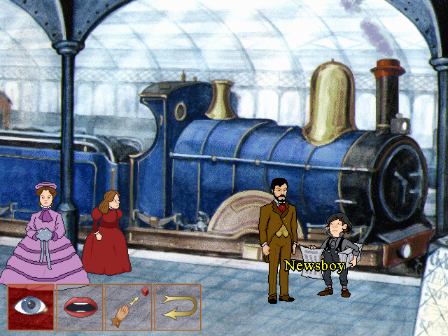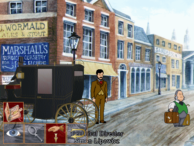 The Gene Machine’s visual style blends hand-painted 2D backgrounds with layered sprite work, giving each scene a quasi-3D feel that was ahead of its time. From foggy London docks to the opulent drawing rooms of Featherstonehaugh Manor, each location is rendered with meticulous detail. Lighting effects—torches flickering on stone walls, shafts of sunlight through stained-glass windows—add depth and atmosphere to the Victorian setting.