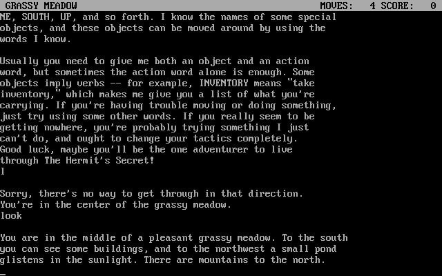 The Hermit’s Secret offers a classic text-driven treasure crawl experience that feels both nostalgic and inviting. From the moment you step into the game, you’re greeted by a straightforward parser that accepts simple commands like “go north,” “take lantern,” or “give ruby to troll.” This no-frills approach keeps the focus squarely on exploration and puzzle solving rather than on mastering complex control schemes. It’s an ideal introduction to interactive fiction for newcomers and a pleasant stroll down memory lane for veterans of the genre.