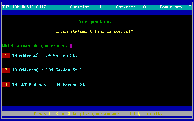 As a quiz game, The IBM BASIC Quiz doesn’t offer a narrative-driven story in the traditional sense. There’s no protagonist to follow and no plot twists as you progress. Instead, the “story” unfolds through your own journey of knowledge and mastery of BASIC commands, functions, and historical tidbits.