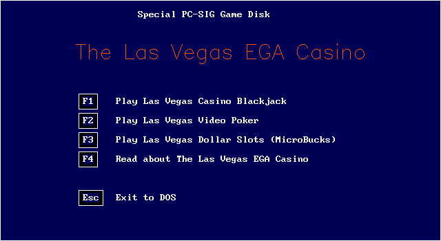 The Las Vegas EGA Casino offers a straightforward yet surprisingly deep simulation of three classic casino staples: Blackjack, Video Poker, and Dollar Slots. Each game mode faithfully recreates the basic rules you’d find on a casino floor, making it ideal for both newcomers learning the ropes and seasoned players refining their strategies. The controls are simple—keyboard-driven menus guide you through betting, card draws, and spin controls—so you spend less time wrestling with mechanics and more time immersed in the action.