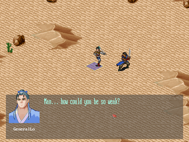 The color schemes lean toward earthy tones: muted reds, browns, and grays reinforce the battlefield setting, while brighter hues highlight important items and character portraits during conversations. Although you won’t find modern shaders or dynamic lighting here, the game’s clean presentation ensures that combat remains readable and that important visual cues (like low-health indicators) stand out clearly.