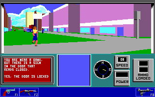 The visual presentation of The Terminator captures the gritty, rain-soaked streets of L.A. with a distinctive late-’90s veneer. Buildings loom with blocky geometry, while neon signs cast vivid reflections on wet asphalt. This period-authentic style amplifies the sense of dread that the Terminator’s pursuit should evoke.