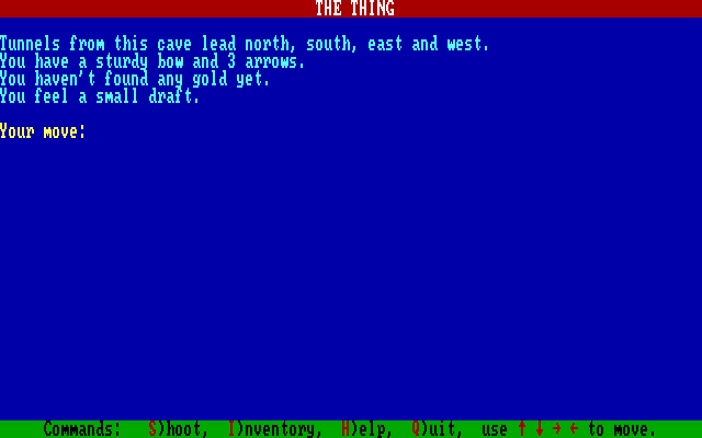 The Thing delivers a tense, strategic experience at every turn of its labyrinthine caves. You begin each session armed with a finite supply of arrows and the basic mapping tools needed to chart your progress. Exploration is key: you’ll carefully navigate dimly lit passages, probing for gold nuggets while fending off the possibility of unseen dangers behind every corner.