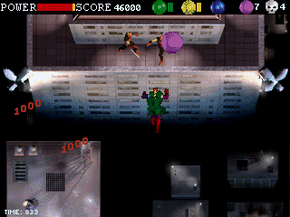 They Call Me… The Skul offers a unique blend of interactive comic reading and classic side-scrolling shooter action. Players flip through richly illustrated comic panels to follow Steve Kane’s transformation into the masked vigilante Skul, then seamlessly transition into high-octane aerial combat across urban rooftops. The controls are straightforward: use the arrow keys to maneuver Skul in midair and fire a steady stream of projectiles at the Power Elite gang members that swarm the skyline.