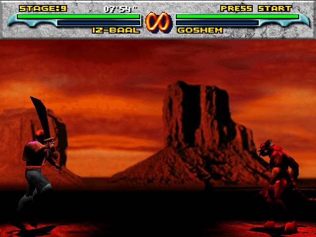 Time Warriors delivers a classic polygonal 3D fighter experience that feels immediately familiar to fans of the genre while carving out its own identity with a roster of eight distinct combatants. Battles are fought on open arenas where ring-outs can occur just like in Virtua Fighter—sending characters plummeting off the edge if they’re careless. Each warrior brings unique reach and weight, from the swift strikes of Hysis’s twin sabers to the heavy swings of Molloch’s battle axe. This diversity encourages players to experiment and find a fighter whose range, speed, and style suit their playstyle.